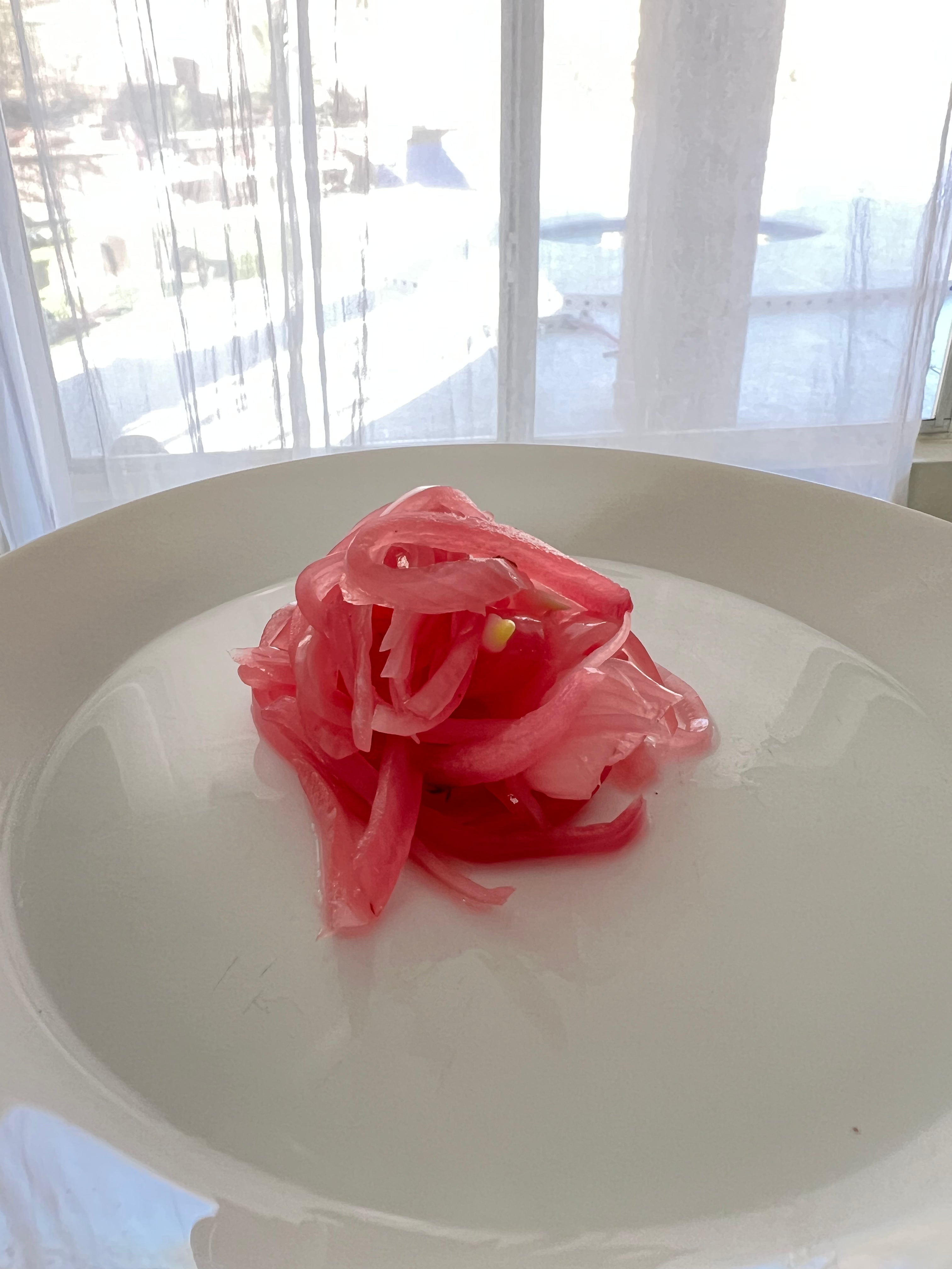 Ingredients: Onions, Water, White Vinegar, Apple Cider Vinegar, Salt, Garlic, Dill, Chili Flakes, Pickling Spices.
