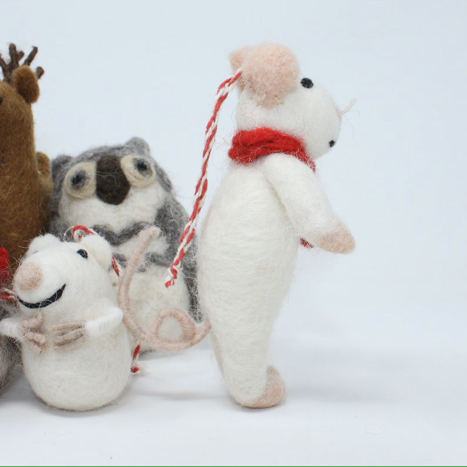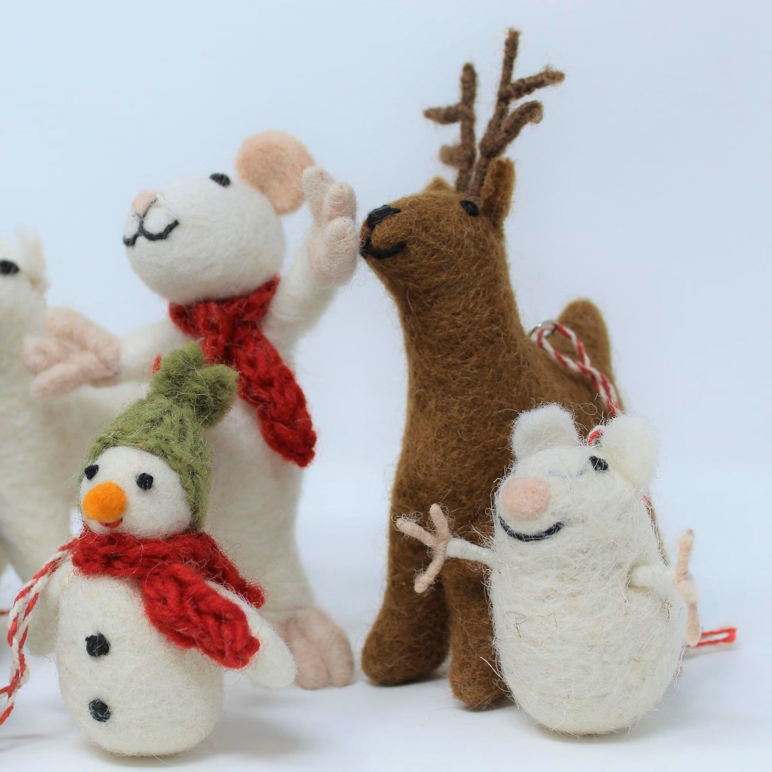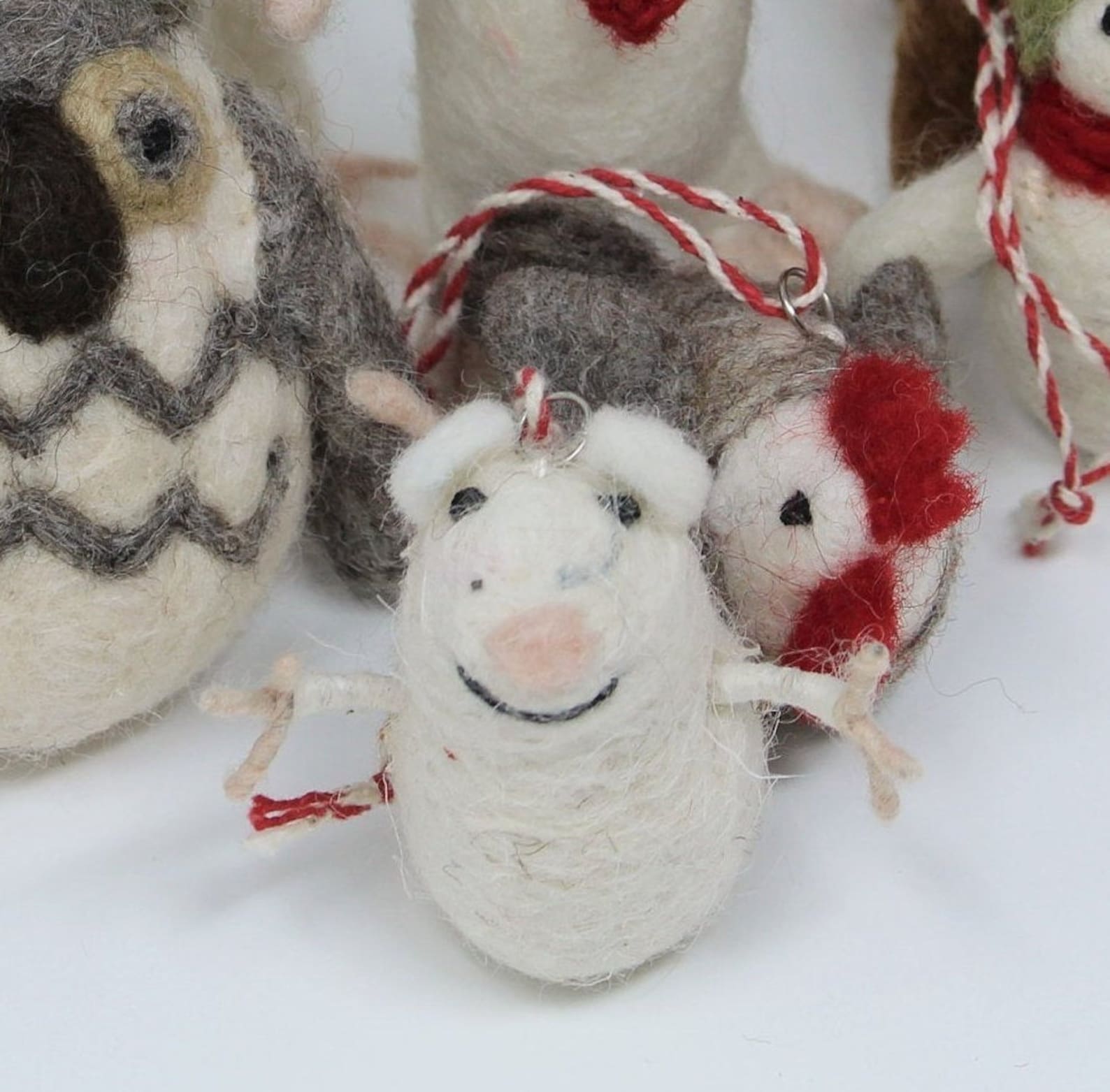 Dress your Christmas tree this year with these special felted wool ornaments collection, Owl, Deer, Reindeer, Mouse with Scarf, Little Mouse, Rooster, and Dressed Snowman!